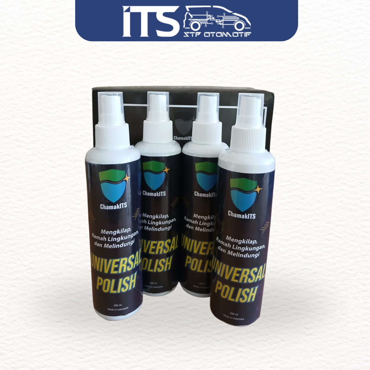 Produk Universal Polish yang diformulasikan untuk bekerja optimal pada semua jenis permukaan. Produk ini menggunakan bahan ramah lingkungan dan dikemas dalam botol spray 200ml. Digunakan untuk melindungi dan mengkilapkan body motor, Dash Board, Interior mobil, furnitur dan lain-lain.